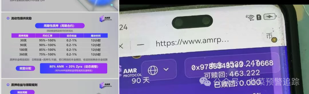 AMR这类资金盘骗局猖獗。它们官网精美,用量子加密等概念包装,以高息回报和拉人提成吸引投资者。实则无真实盈利项目,靠新钱还旧账。目前已现资金入场放缓、提现难等问题,暴雷在即。请大家切勿被高收益迷惑,及时提现止损,保存证据并向相关部门举报,避免财产损失。
