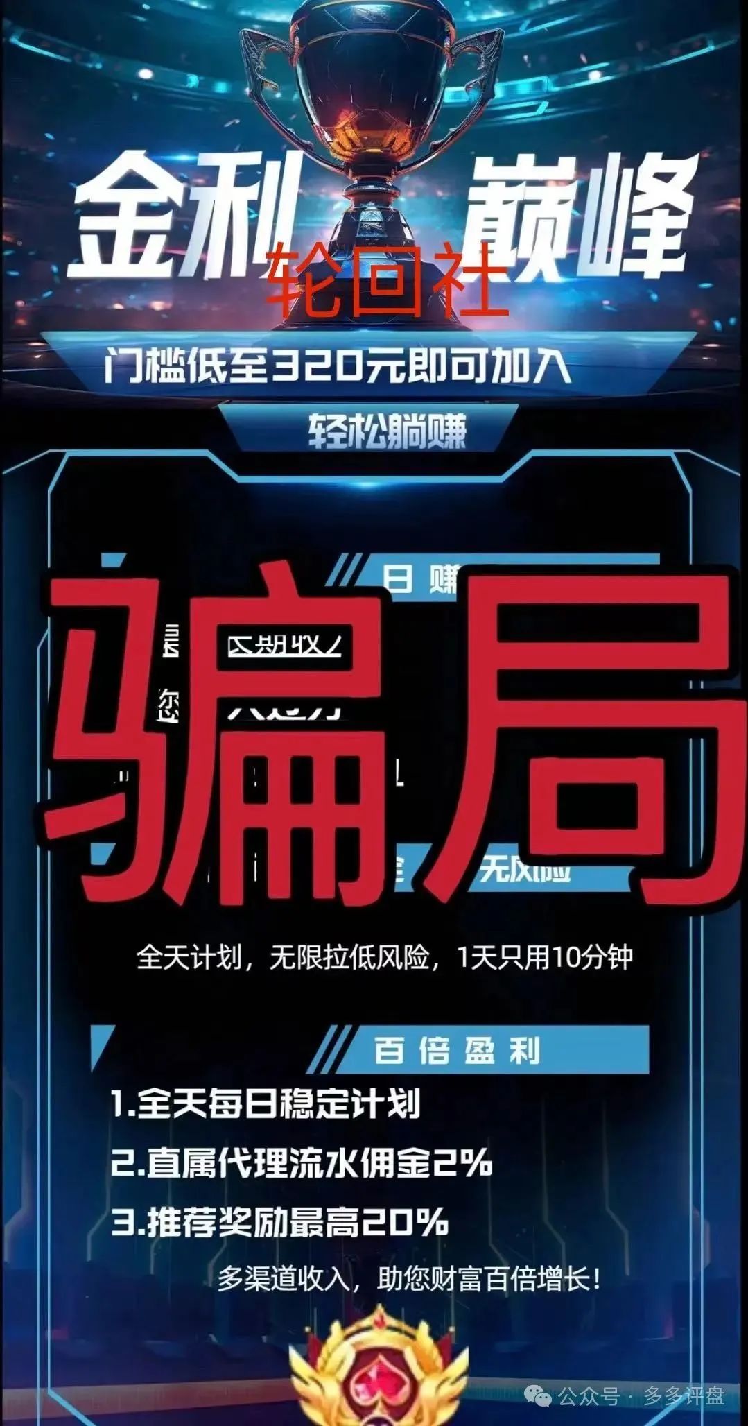 多多评盘界敲警钟了!那些还在金利巅峰里做着暴富梦的人,该醒醒了!这个才蹦跶了一个月的彩票类资金盘,已经急不可耐地开始玩单割的把戏。别以为它还能撑多久,种种迹象都在叫嚣着:崩...