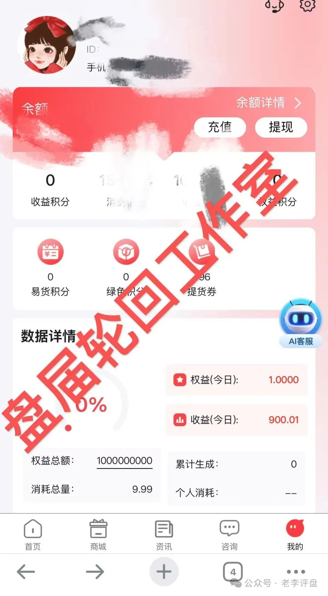 其实很久以前,老李就曾剖析过“艾某合”的运营模式,就是买空卖空,击鼓传花。然而“易无界”跟其如出一辙,所谓的 “抢单互助平台拍卖” 模式,实则是典型的庞氏骗局套路。平台以高额回报为诱饵,诱导参与者不断投入资金参与抢单,承诺在短时间内获取丰厚收益。但实际上,这些收益并非来自真实的商业盈利,而是用新投资者的资金来支付老投资者的回报。一旦新参与者的增长速度放缓,资金链就会迅速断裂,届时所有参与者都将面临血本无归的结局。