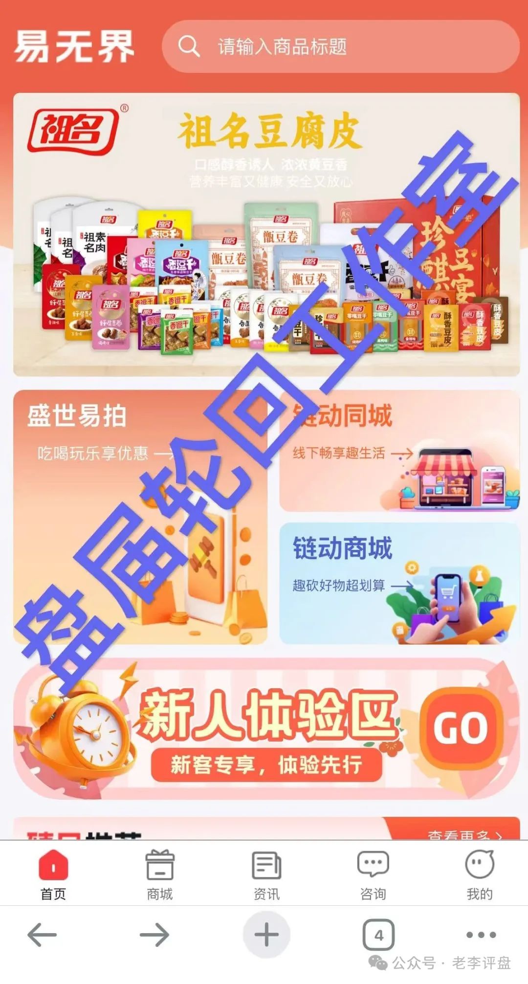 近日,多位粉丝给老李爆料一个叫“易无界”的的项目。经老李深入调查后发现,这竟是一个披着商城外衣的抢单互助资金盘骗局。据悉,该项目早在今年 5 份月就开始试运营,于6.7号正式上线。...