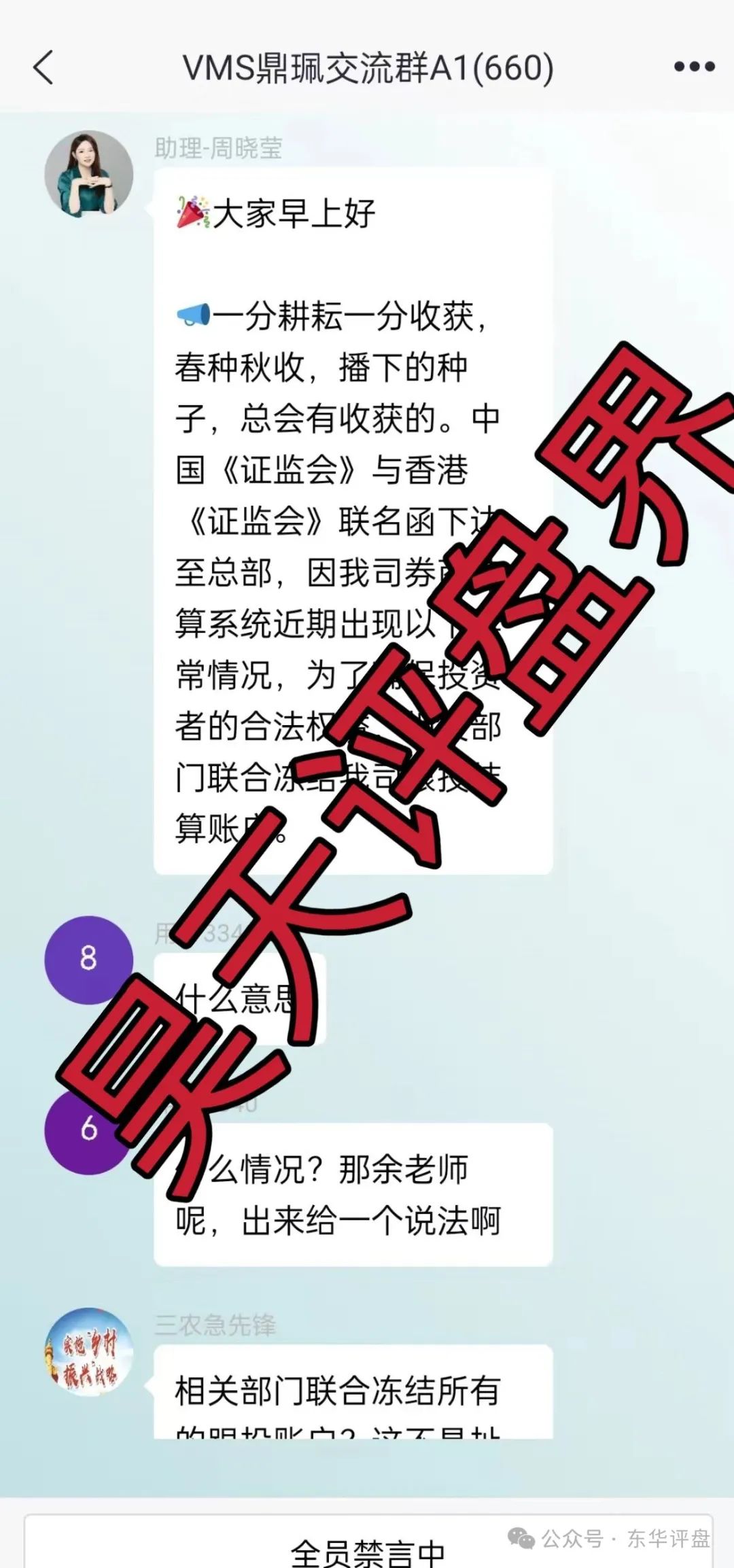 昊天评盘界:南华金融(鼎珮证劵)股票跟单类资金盘骗局昊天之前曾多次预警和爆料,据知情人爆料操盘手老高圈钱过亿了,已经崩盘后改名DRW了然后让大家交“手续费”一个号一万,早在4月份的时候昊天就发文章爆料过之前就大量单割过受害者,骗局崩盘公告如下: