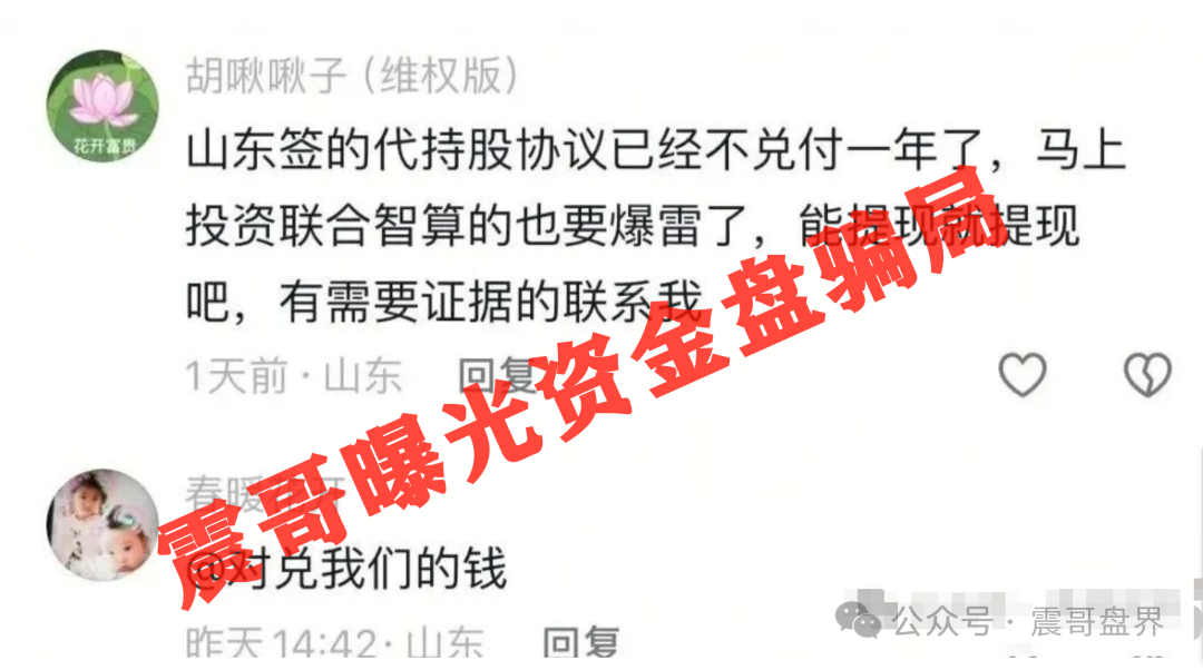 社交平台上已经有人维权了,有人砸了几十万甚至几百万进去,看得人头皮发麻。要是你也中招了,赶紧联系震哥,一起把这帮人的套路扒干净!