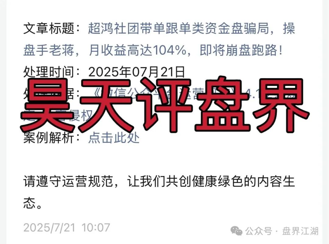 昊天评盘界:今天昊天要说的是超鸿社团带单跟单类资金盘骗局,这个诈骗团伙今天大量举报反诈文章看来是要崩盘跑路了,举报了昊天好几篇文章看来是要和昊天死磕到底了,昊天曝光的资金盘...