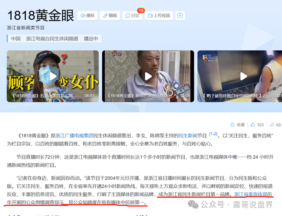 再说个更狠的,人家开播二十年稳坐浙江民生新闻头把交椅,省委调查都说它知名度全省第一!