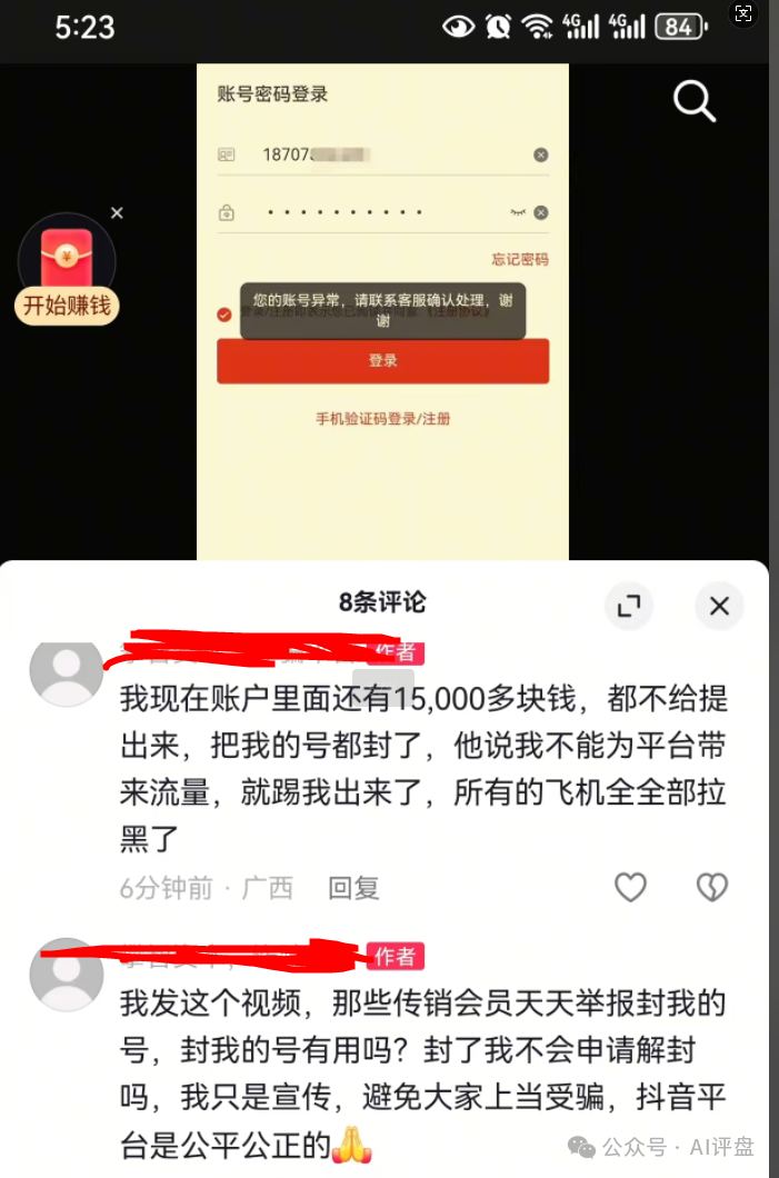 下面一个受害人发的视频,加入攀智资本前,说有实体工作室,天天有收益,AI帮忙炒股。但是由于自己发展下线不给力,只能躺平想吃静态收益,那么不好意思,项目方直接单割!