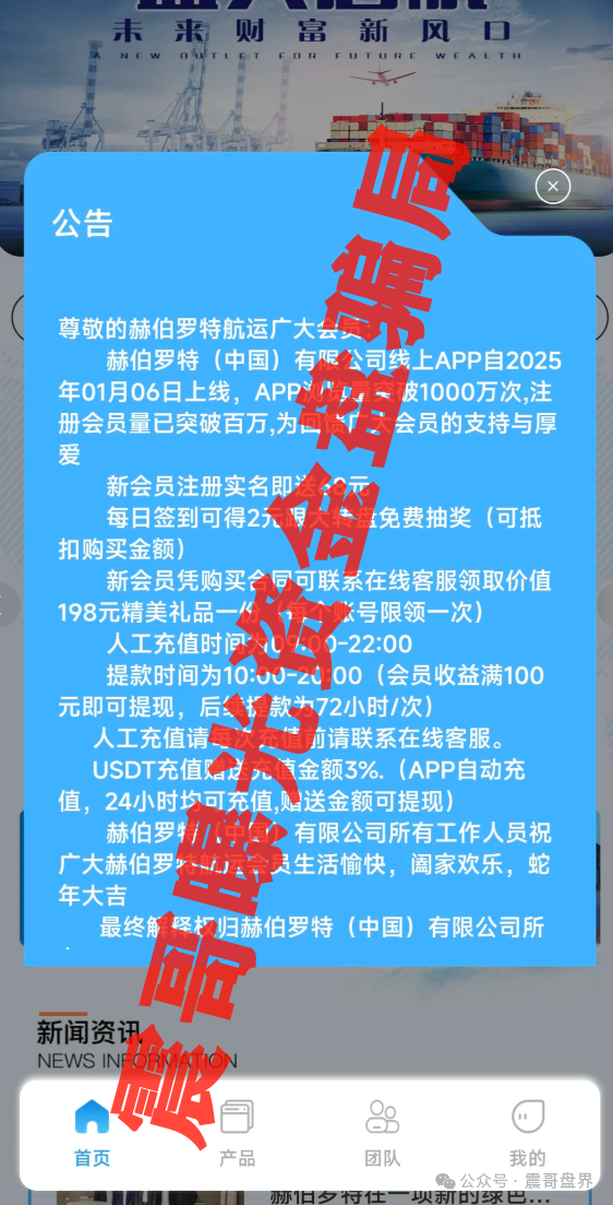 兄弟们注意了!最近有个叫赫伯罗特的资金盘又冒出来了,震哥一看就发现不对劲——这不就是去年跑路那帮人换了个马甲又来圈钱吗?这帮人可精了,专门挑赫伯罗特这个正经航运公司的名头来...