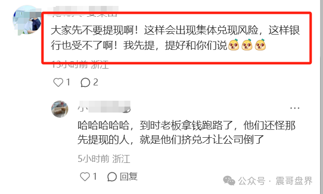 悠然境这个项目震哥很了解,泡沫也不算很大,基本上就是抄袭的某拍模式,天天在某书,某音上面网推,吸引来的也都是某拍会员,现在某拍出问题,悠然境肯定也会有很大的影响,现在也就出现了挤兑。真实情况就是公司在思考是否把钱给会员提现,还在考虑到底是现在圈了崩盘还是赌一赌艾兴合能够活下去,到时候再去拉拉艾的粉丝能多搞点?这段话有点超纲,估计老司机看得懂。