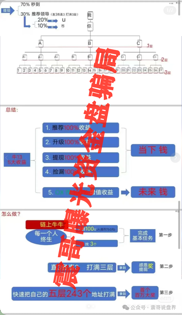 震哥都乐了,这不就是经典传销三件套吗?入门费、拉人头、团队计酬。直推下线抽20%,三层下线还能吃团队收益,嘴上喊着“持币生息日化1.5%”,其实就是拿新韭菜的钱填旧坑。