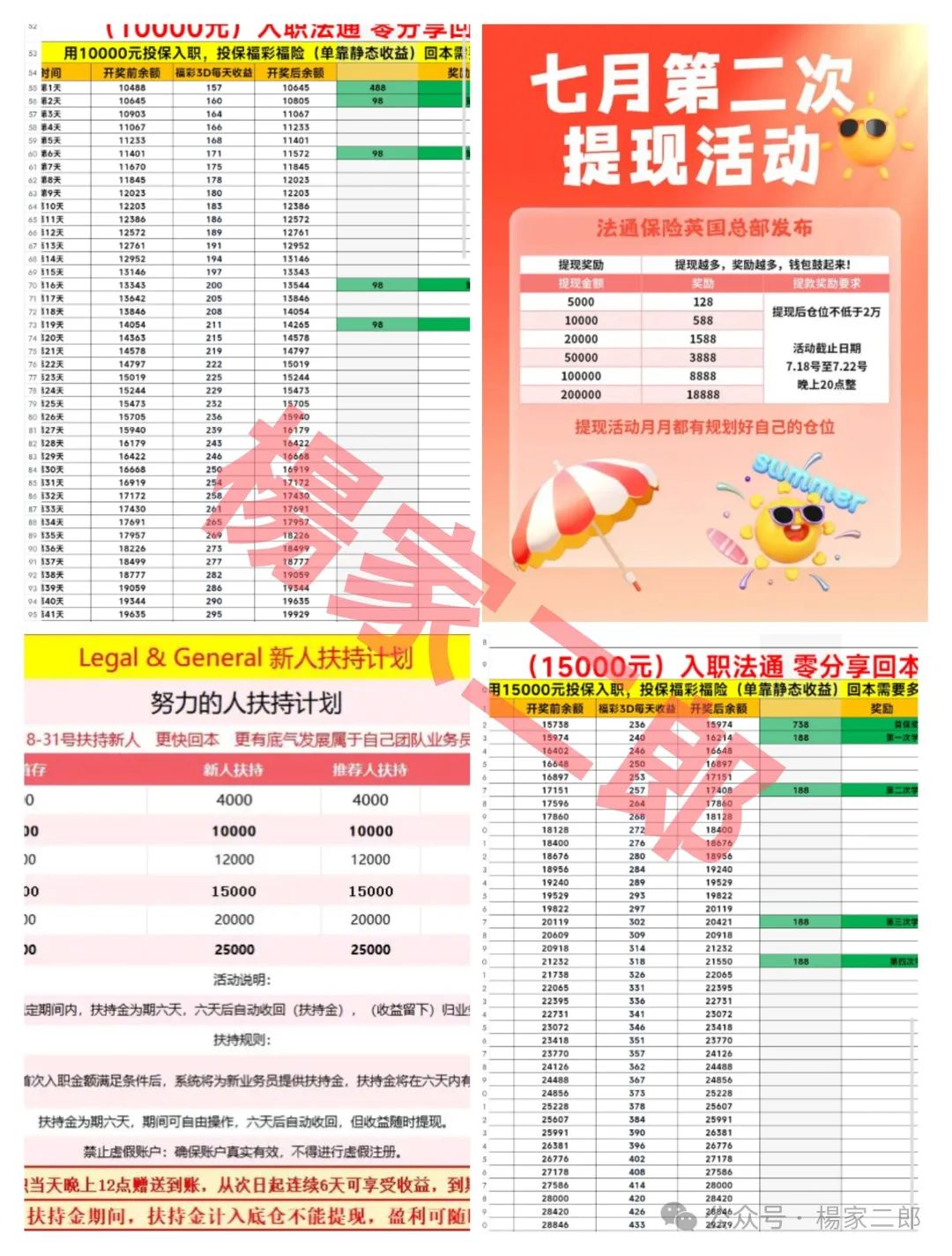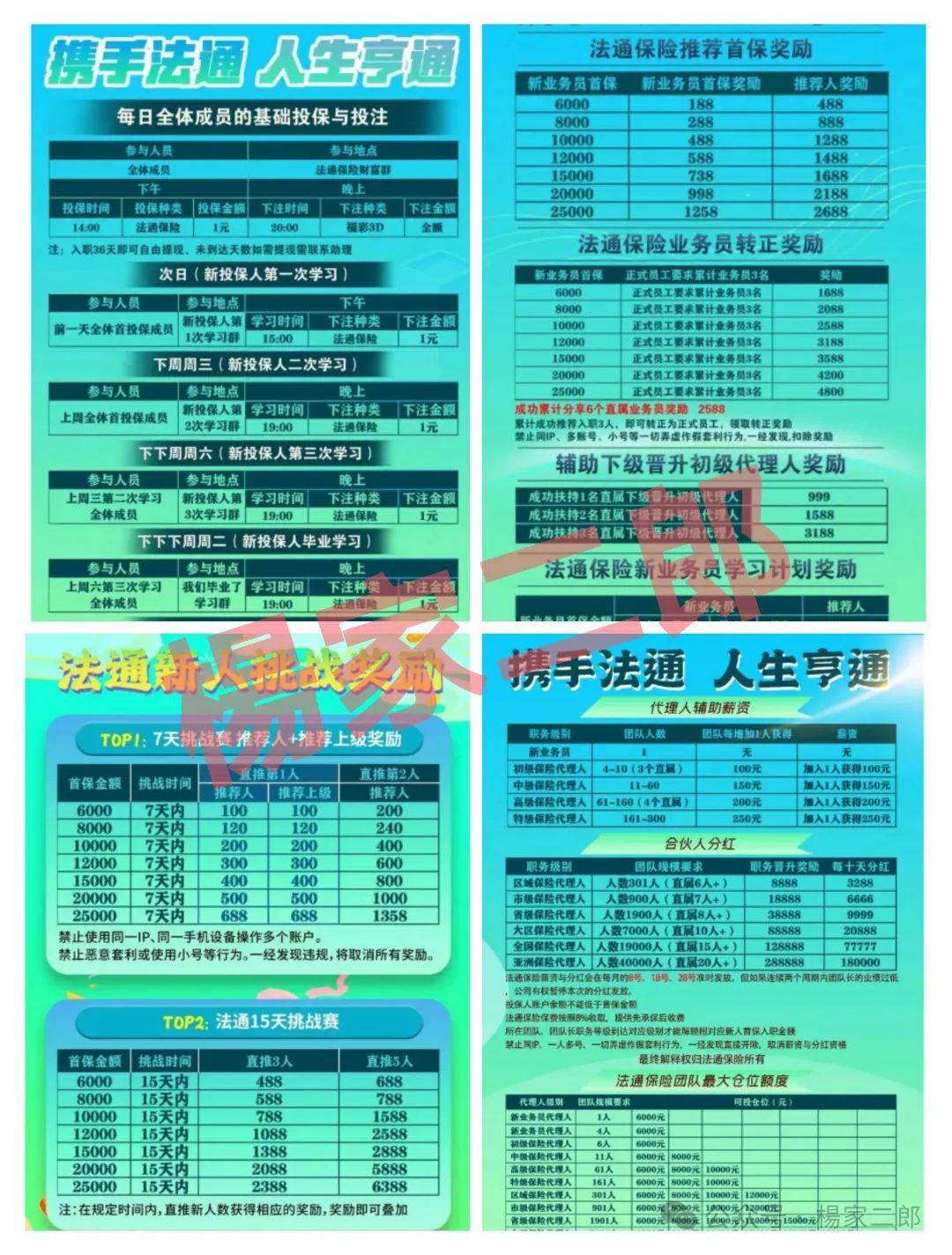 七月活动频繁,为崩盘跑路做准备,新人首充8000,送会员4000,推荐人4000,这么诱惑的活动,明显就是为了收割做准备。目前该平台已限制提现,让交196才能解锁提现,资金盘的老套路,二次收割而已,切莫再次上当受骗!此前其类似的“永明彩险”“保诚码险”项目已崩盘跑路,法通码险也难逃一劫在所难免!