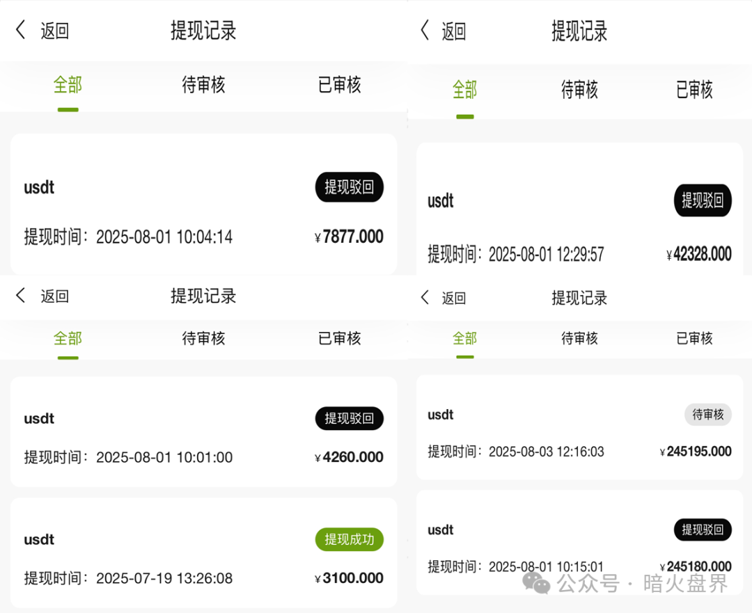 结果就是这样的下场,8月1日开始,提现全部被驳回,关闭提现并发公告称,提现资金流水已突破500亿?牛都被吹上天了,还把银监拉出来背锅,其目的就是锁仓后进行二次收割,先锁仓会员的资金,再以监管的名义让你充值解锁,其实不管你充不充值都解不了锁,因为操盘团伙已经要跑了,只是想在跑之前再收割一波而已。