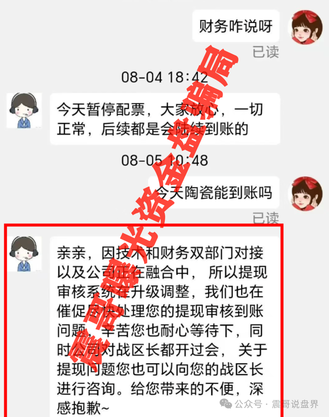 现在维权群里都炸了锅,最早那批拉人头的自己都被套着。听说这孙子原本就背着八千万外债,寻思用这盘子填窟窿呢。结果韭菜长得还没割得快,不到两个月就玩脱了。那些搞一拖六拉人头的,现在估计肠子都悔青了吧?