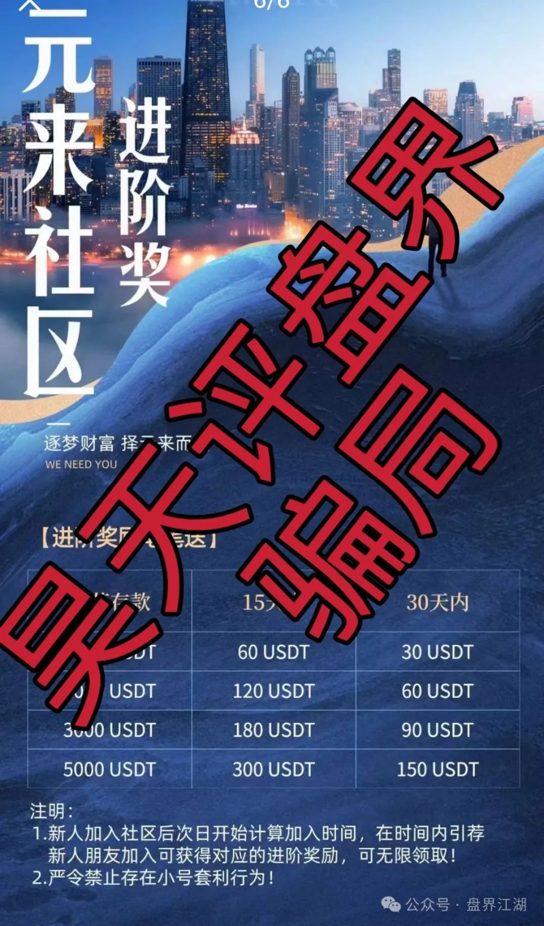昊天评盘界:近期粉丝爆料又出来一个叫元来社区UBS的跟单类资金盘骗局,典型的一轮圈杀猪盘,高度预警,看见一定要远离!但凡参与过此类模式的大家都能一眼看出来,制度都是一模一样的 ,静态制度还是动态制度都是一样的,说实话现在玩这种短期盘的基本都是韭菜或者拿帕点的黑心团队长还在推广,到处发广告找人填坑: