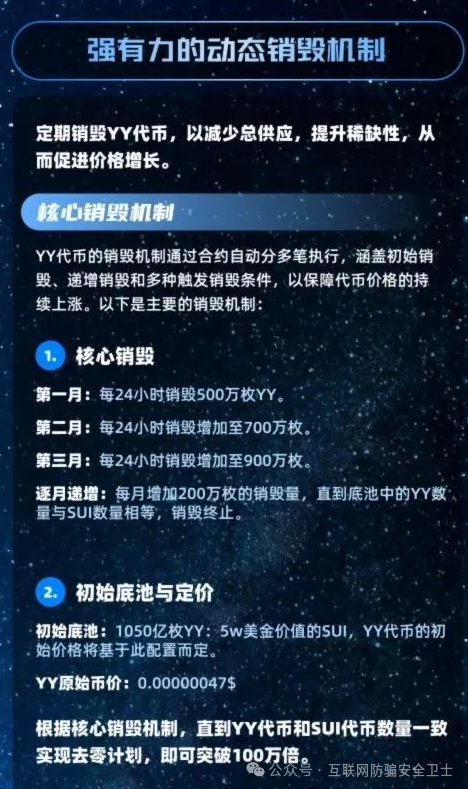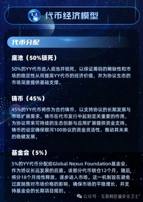 项目方还搞了个叫 “YY” 的代币,吹得天花乱坠,说什么 “通缩销毁”“保险池护盘”,保证价格只涨不跌。但你仔细想想,这代币总共发多少、怎么发,全是项目方自己说了算,想改规则就改规则。