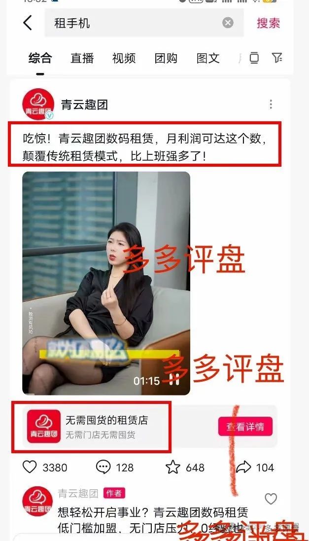 粉丝一直催多多研究青云租,一看果然“惊为天人”。 一台万元手机,平台宣称租出年收益30%,投资人躺赚3000?逻辑鬼才! 租户呢?信用750分以上的人,为啥不直接分期买新机?非要花一年租金≈新机价,租个二手?这需求纯属虚构! 对比抖音租机直播间:苹果16月租350,年付4200,租完平台转手卖二手再赚3000。人家精准收割月光族、学生党——需求真实,模式自洽。 但青云租更“高级”:不招租户,专招加盟! 本质是绕过C端需求,直接发展“投资人”。手机根本租不出去?没关系,只要有人信30%收益,现金流就能滚下去。