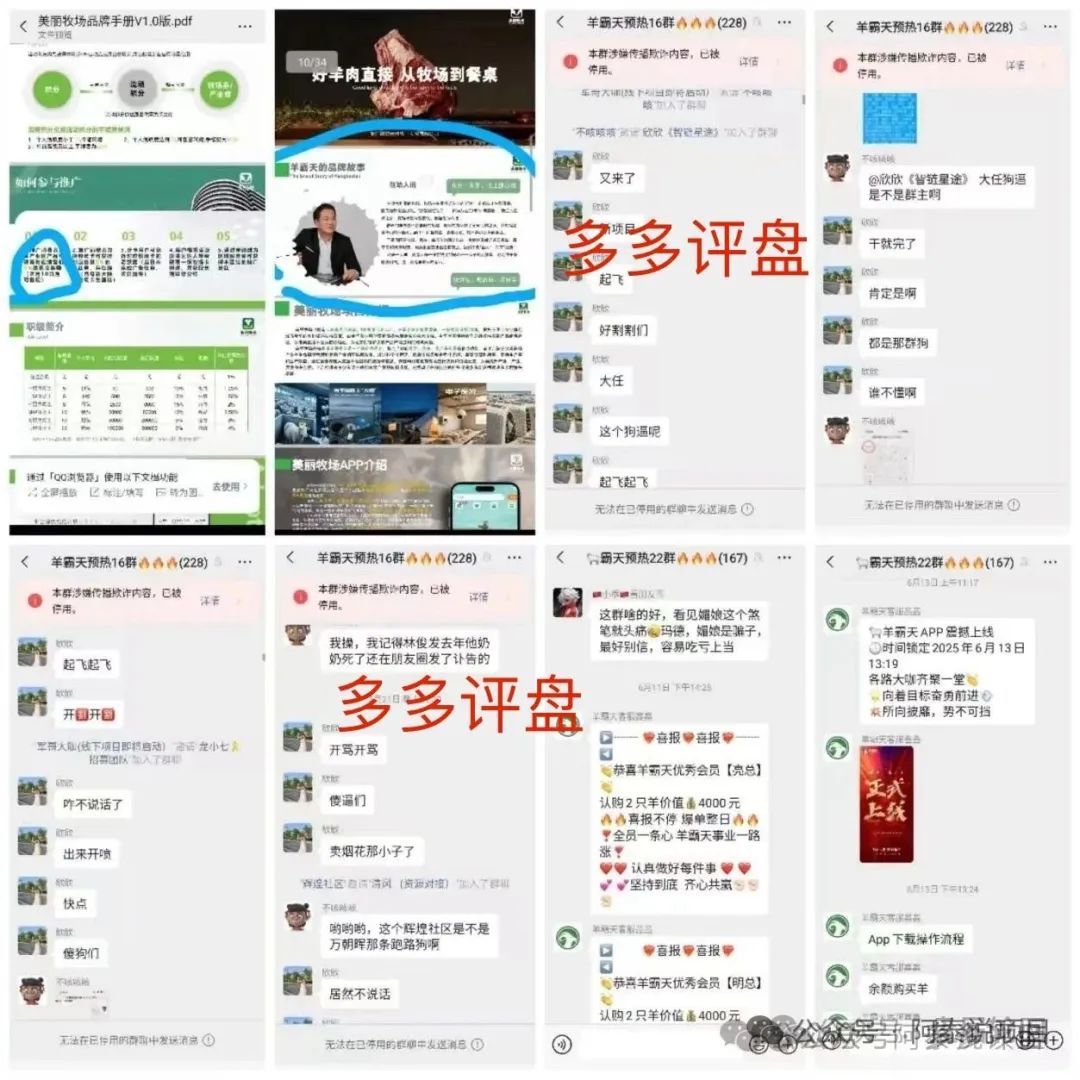 废话不多说直接上干货:“美丽牧场”?不过是“羊霸天”骗局原班人马换了个“生态羊”的时髦马甲,再次粉墨登场! 项目方深谙韭菜心理,用一个“有机”噱头和一张凭空画就的大饼,未上线就空手套白狼圈钱四千万。幕后操盘的,依旧是那个熟悉的反派联盟:杨胜男,携早已被康达瑞除名的欺诈惯犯王平(平儿)、宋留明(故梦)、刘先民(咸鱼)。这伙人坑蒙拐骗的看家本领丝毫未变,再度以天花乱坠的虚假承诺,诱骗投资者上钩。 其本质就是一个层层吸血的血腥金字塔:项目方坐在塔尖,旗下的团队长们充当打手,合力榨干每一个怀揣贪欲入场的会员。这不是投资,这是一场针对贪婪的围猎。记住,换汤不换药,镰刀还是那把镰刀。