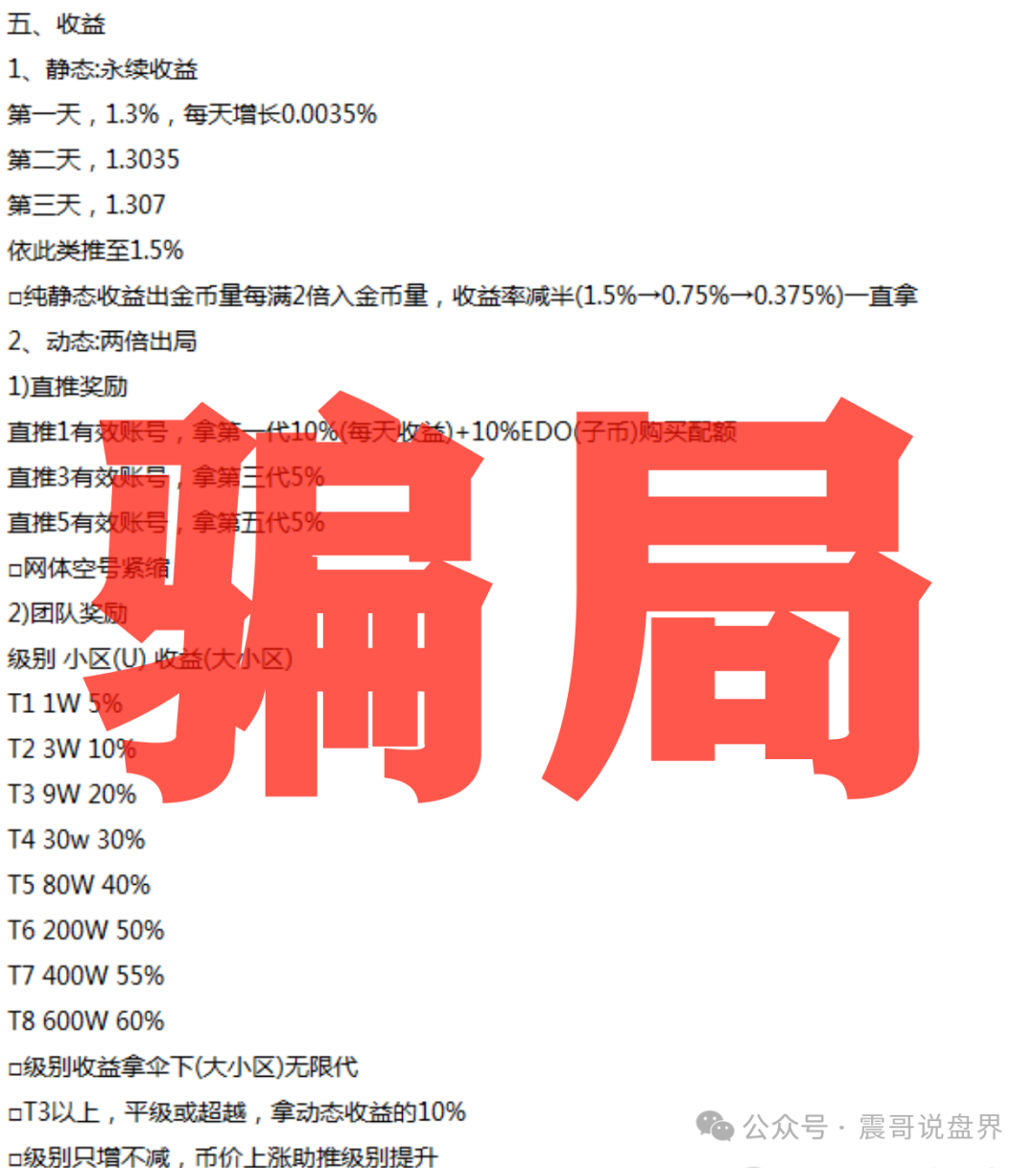 月初刚开盘就急着拉人头,宣传搞得花里胡哨。震哥研究了下他们的白皮书,发现就是个换汤不换药的资金盘。现在这种项目太多了,都是先画大饼吸引韭菜进场,等圈够钱就跑路。