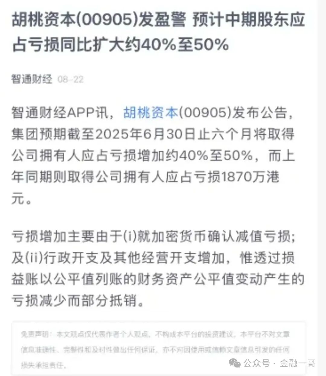 再瞧瞧胡桃资本自身,看看其半年报便知:2025 年上半年,公司营收还不到 90 万港元,费用却烧掉了 1766 万,亏损高达 2670 万,主营业务基本处于荒废状态。整个公司定位虽说号称 “投资控股”,网站上写的都是 “寻找资本新机遇”,但实际操作全靠炒壳、财技以及资产注入来编造新故事。什么创新、什么战略,全都是换汤不换药的套路。以前炒元宇宙概念,现在炒 Web3,说不定明天又换成 AI 大模型,反正就是一波散户接盘,一波炒家走人,谁接手谁倒霉。