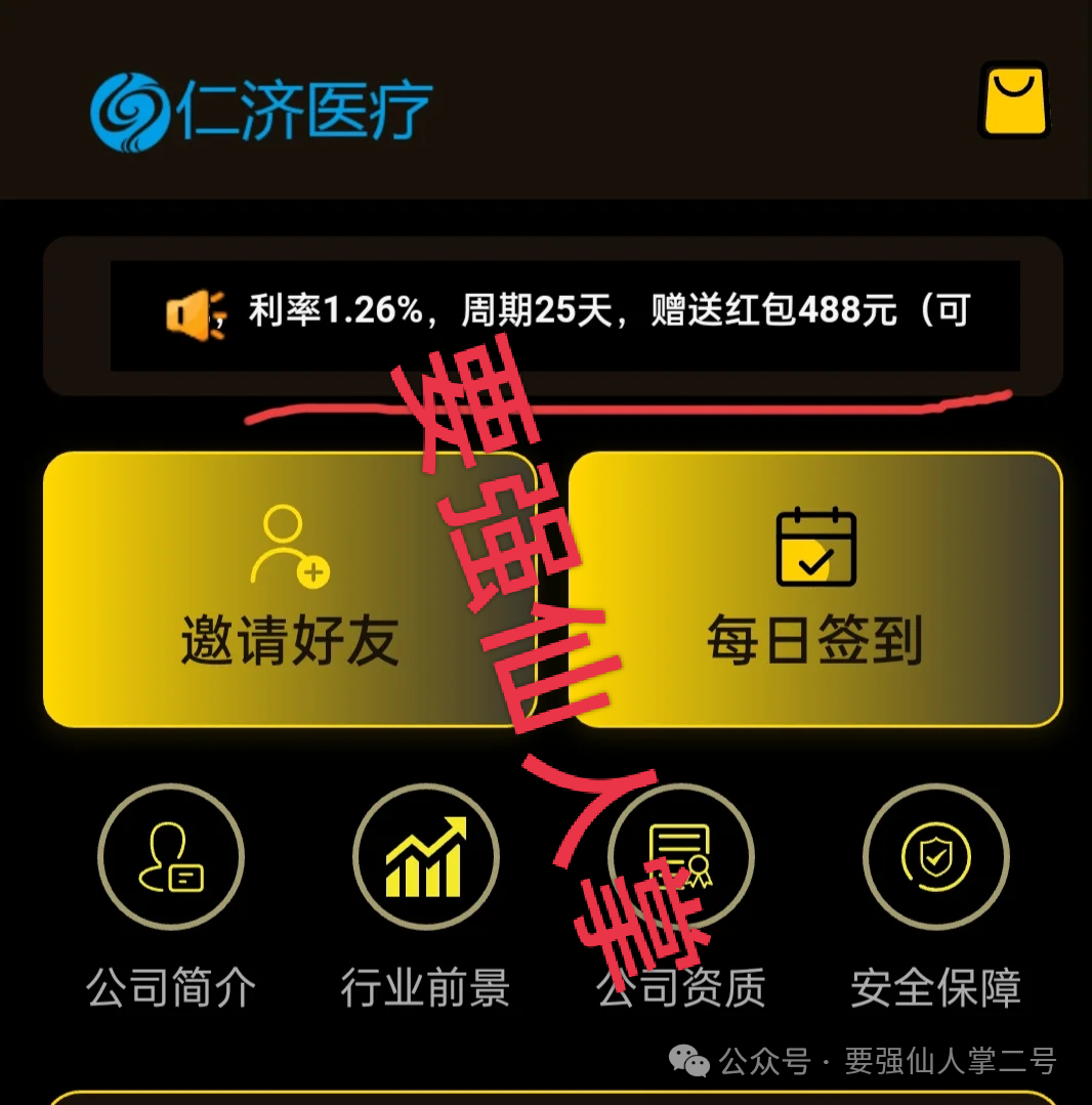 有粉丝反馈在网上认识一个人,给他推荐一款名为“仁济医疗”的投资理财APP,我查询了相关资料,这就是一个打着医疗投资的资金盘,用高收益来吸引用户入局,可以说是一个高危资金盘骗局,...