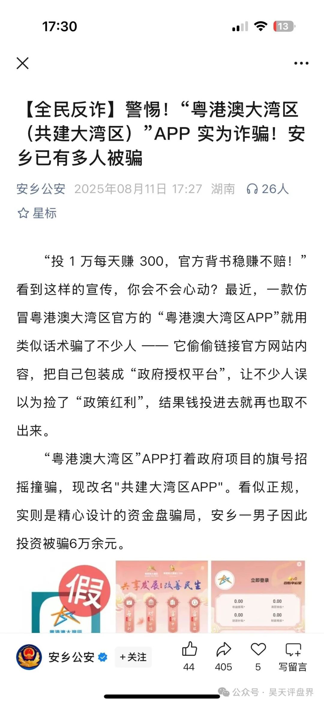 1.天体老虎Ai量化骗局这个骗局昊天预警了很多次了,前天已经暂停提现,理由是系统被攻击,随后恐慌币价暴跌,基本凉了!2.阿联酋中国商会CBC骗局跟单类资金盘骗局,官方出面打假,大量单割...