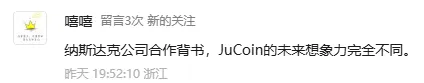 更有聊天记录显示,有人吹嘘“纳斯达克公司合作背书,JuCoin的未来想象力完全不同”,还有人表示“黑稿只是嘴炮,5亿美金合作才是实力的体现”。可这些所谓的“实力体现”,没有任何实质性证据支撑,全是空中楼阁般的空想。