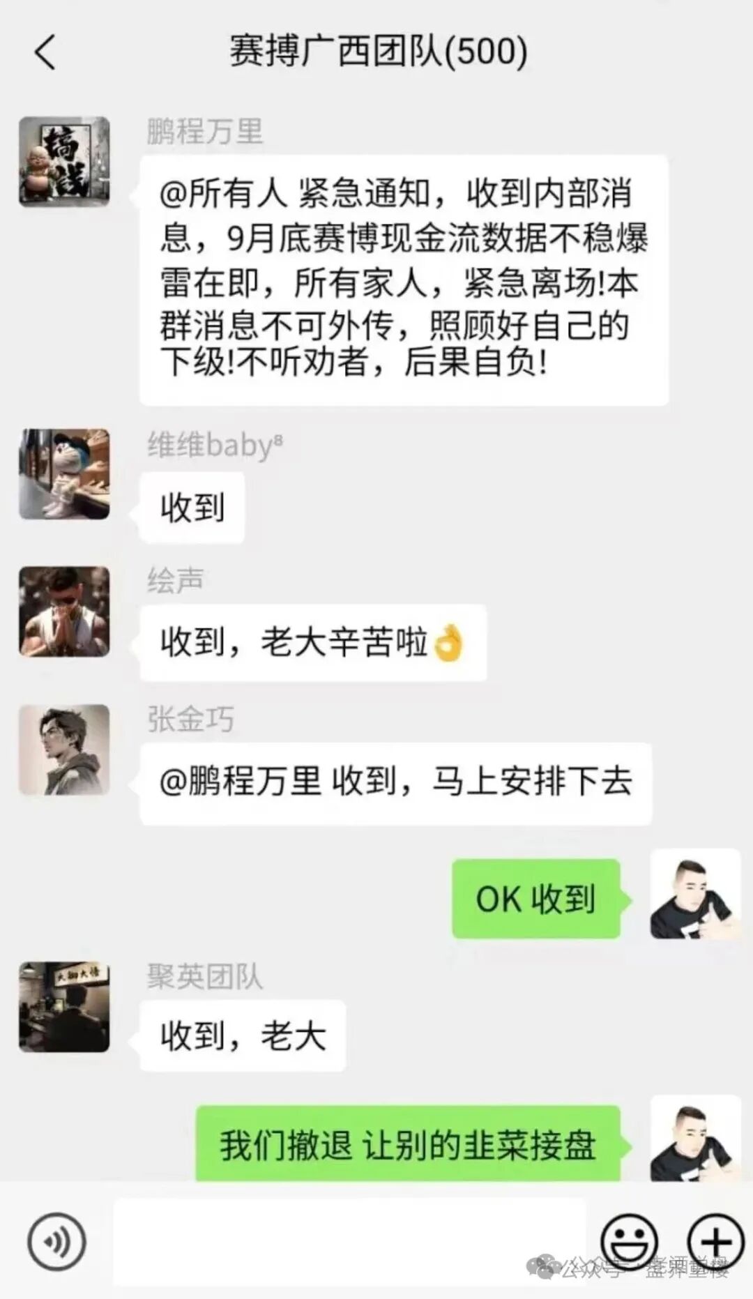 湖北、成都、广西那几个大团队已经在偷偷撤了。赛博这盘子撑了这么久,泡沫越吹越大,现在连会员提现都快扛不住了,离全线崩盘锁仓就差一口气。