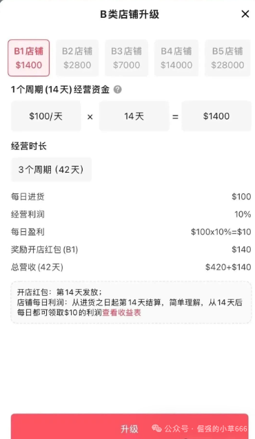 开店投资1400U起,14天返10%,团队分红最高40%;