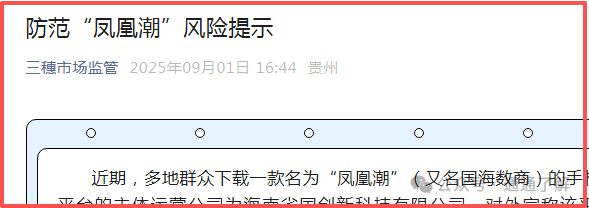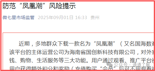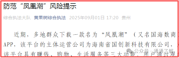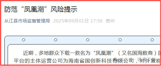 自2025年1月起,全国多省市监管部门已针对"凤凰潮""国海数商"发布警示信息:
