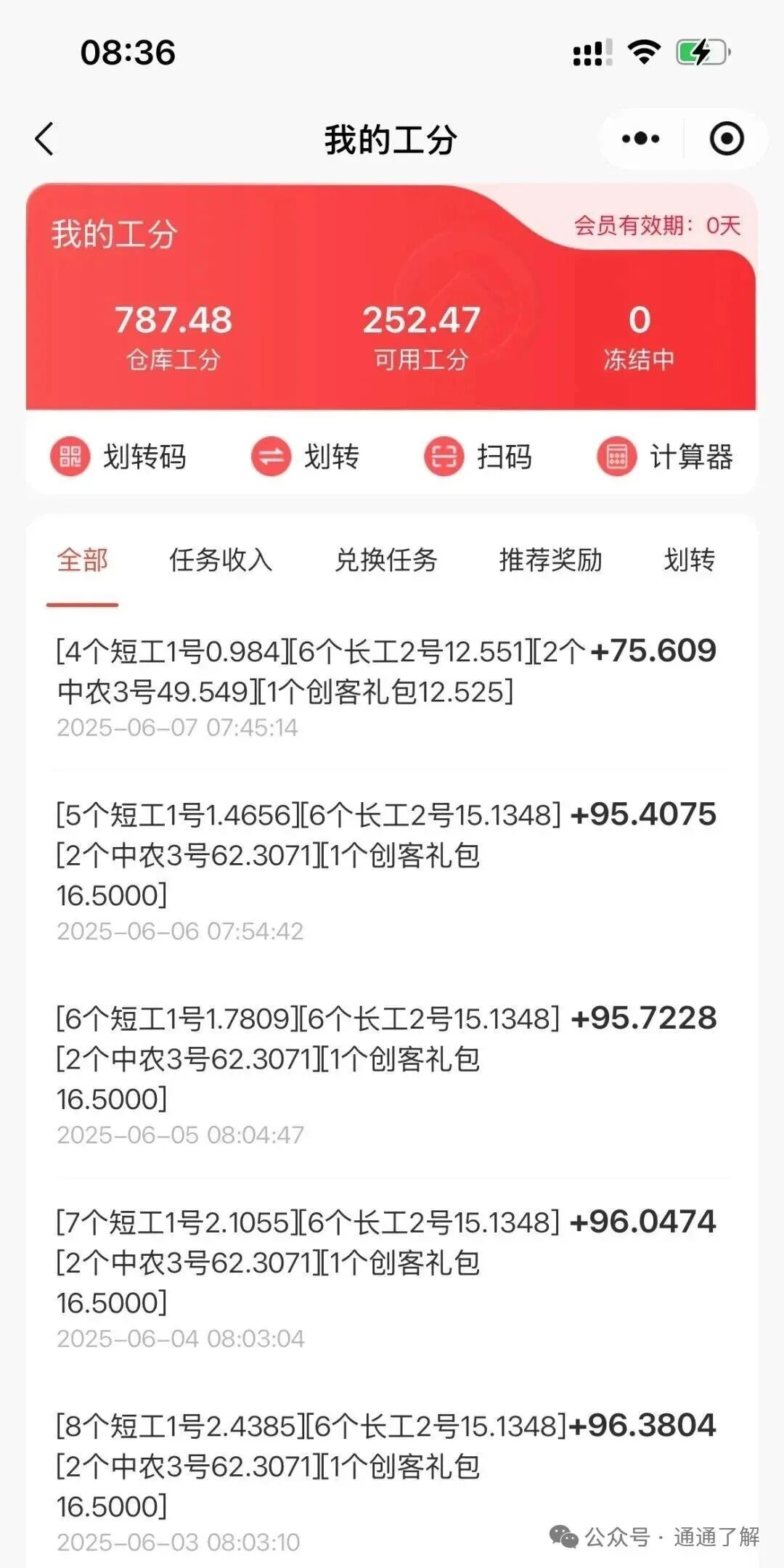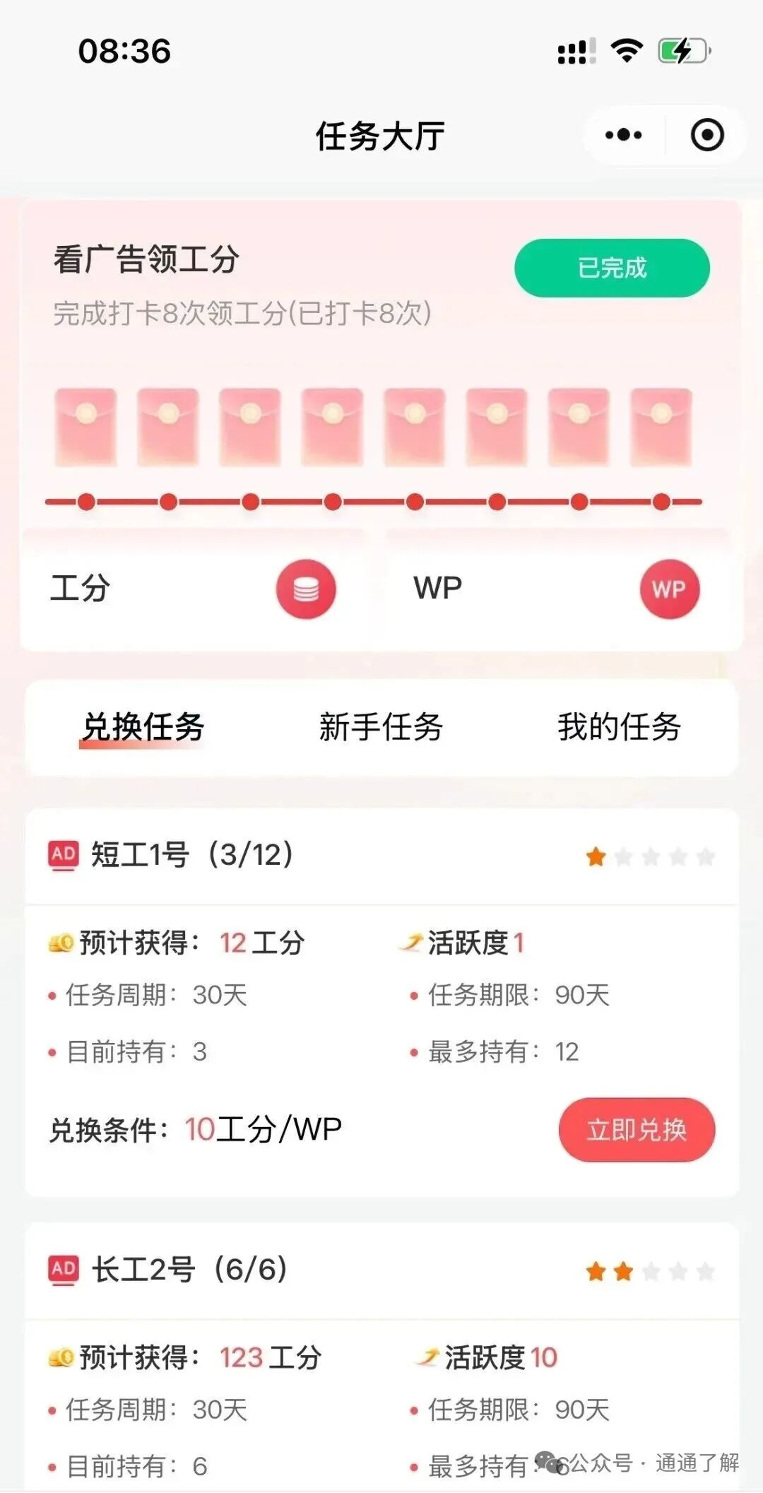 新用户注册后,可通过每日观看3-5个商业推广视频获取"工分",平台宣称"工分"可兑换商品或提现。但普通用户每日仅能获得0.5-1个"工分",若想快速积累,需缴纳费用升级会员,从198元的"体验会员"到9980元的"钻石会员",等级越高每日获得的"工分"越多。