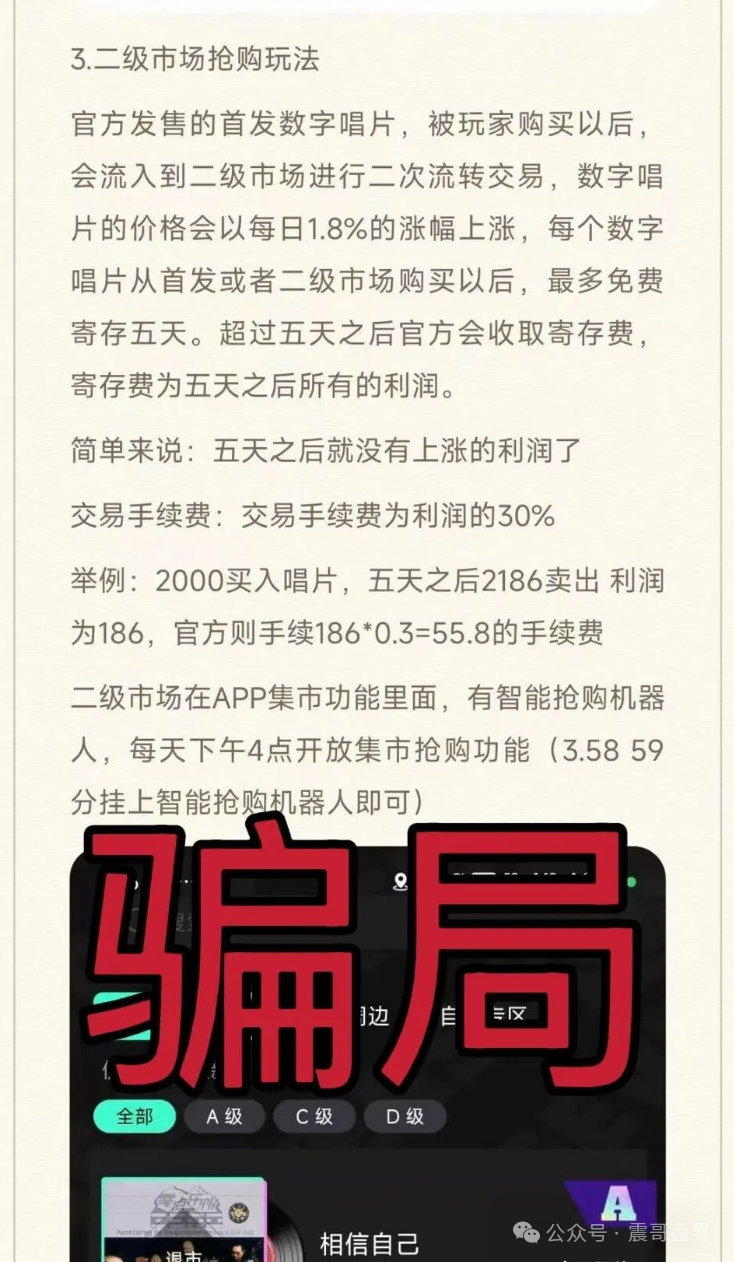 最近有个叫巢音世代的玩意儿挺火,震哥一瞅,好家伙,又是老套路!打着音乐区块链的幌子,搞了个抢单互助资金盘,天天吹资产涨幅1.8%,月收益54%,听着就离谱。这帮人真敢编啊,一年600%?银...