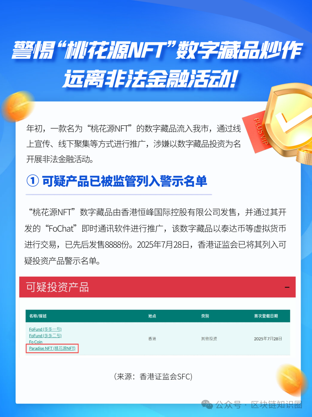 警惕“艾心优选”、“桃花源NFT”数字藏品炒作等非法金融活动!...