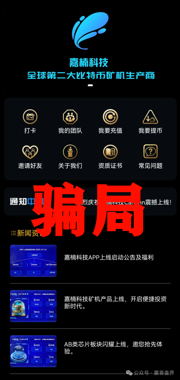 震哥提醒,这帮人盗用上市公司“嘉楠科技”的名字蹭热度。人家正规公司根本没出过什么理财APP,别被名头骗了。