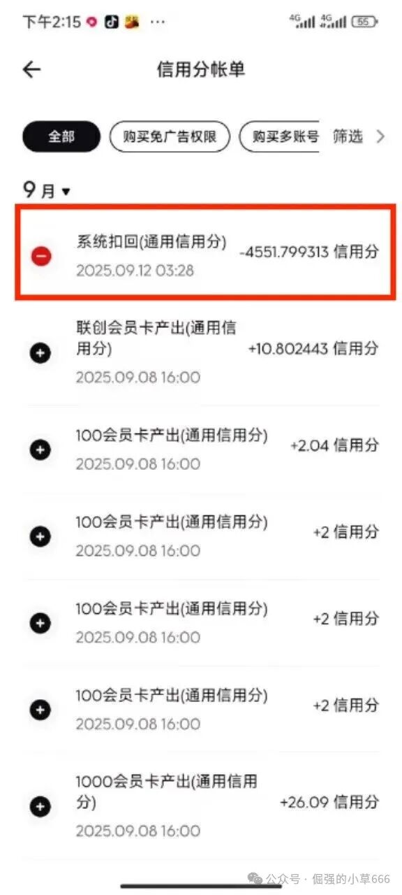 就在系统升级期间,康达瑞再次引爆用户情绪:平台上的所有任务包被强制清零,用户账户中的信用分也被系统“回扣”——即直接扣除并作废,未做任何补偿返还。这意味着,无论你此前投入多少、是否回本、是否活跃,所有资产一夜归零,一切归零重启。