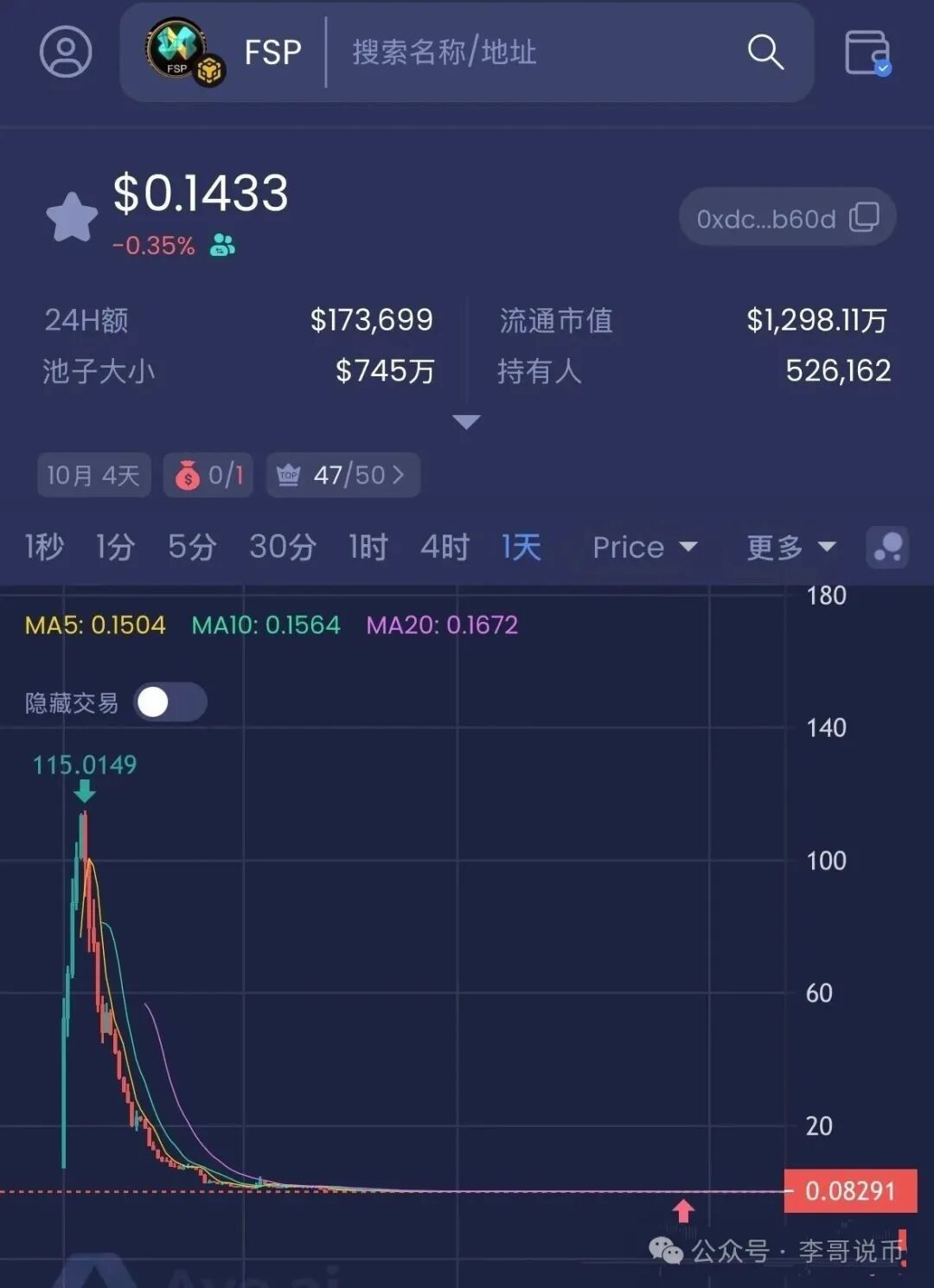 Aifeex发行的AFX,也会像当年风投趣发行的FSP一样,拉高币价质押卖矿机一样的玩法和套路,然后一路出货下跌,完美收割韭菜,毕竟1.0韭菜身上的油水还没榨干,2.0在榨干一次,下面是当年分投趣转型发币质押的,币价拉高115U,一路下跌出货。