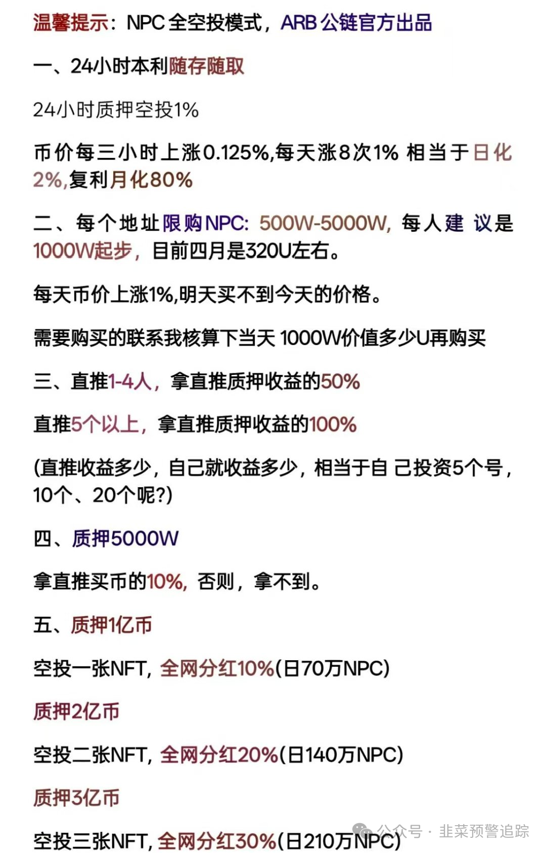 NPC2.0和NPCWG空气币跌99%基本崩盘,骗子又推出NPCR继续割韭菜。该骗局已三次收割,先砸盘圈钱,后重启拉新,如今NPCR上线。其以高收益为诱饵,用传销模式扩散,大团队撤离,大量会员报警。识别此类骗局,可看名称、查交易所、看社区。投资要理性,勿碰不明项目,陷入骗局要报警。