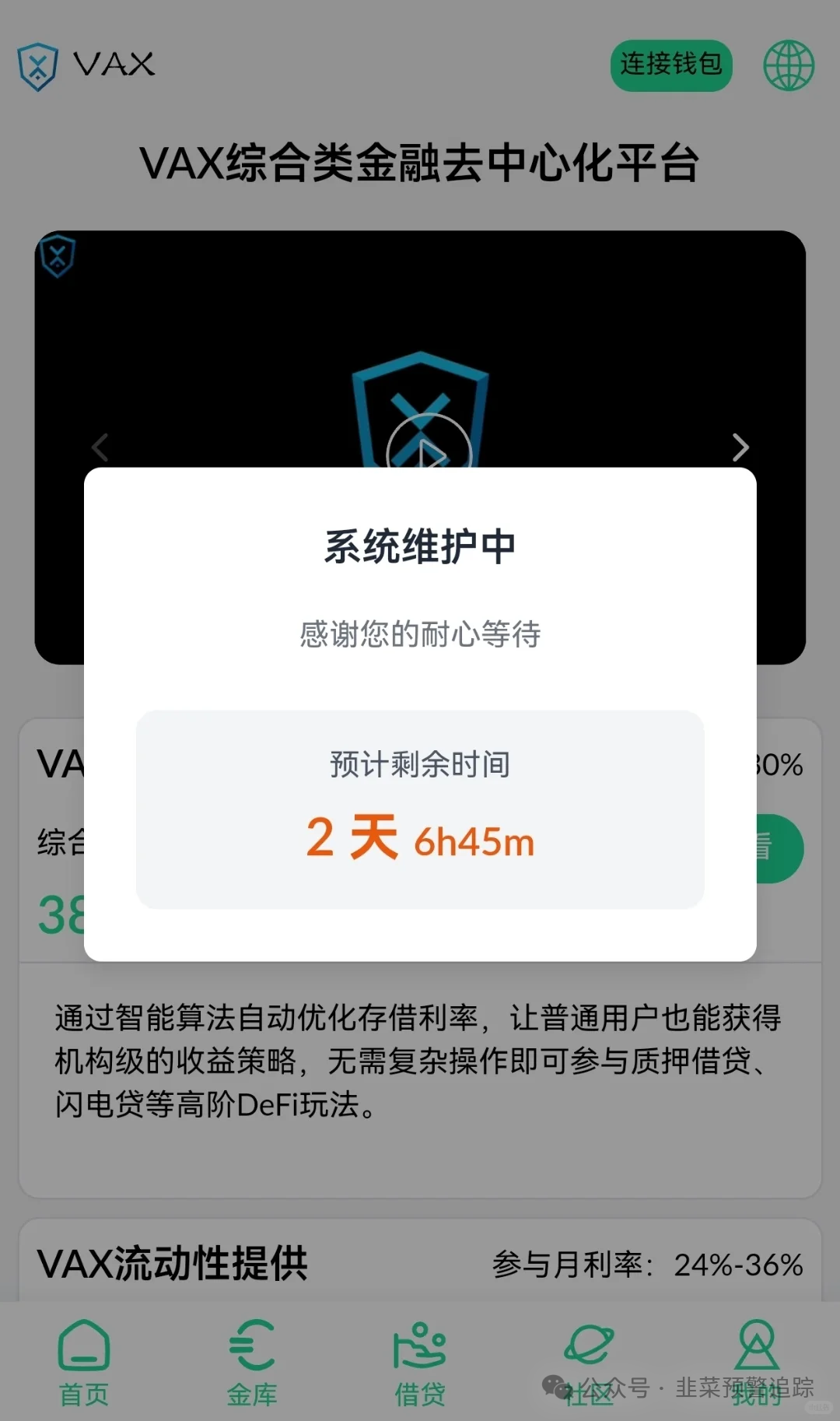 VAX(VaultX)是质押分红类资金盘,有3万多会员,操盘手圈钱几千万。平台以系统升级为由暂停部分功能且无法提现,这是典型跑路前兆,即便恢复提现也只是垂死挣扎。部分团队已撤离,诈骗团伙虽称项目正规,但实则泡沫巨大,切勿参与。
