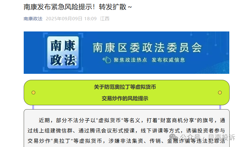 2、南康政法也是发布奥拉丁紧急风险提示!