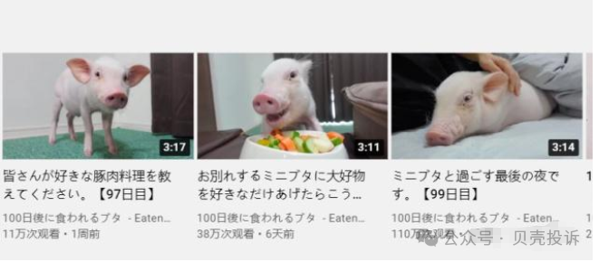 回过头来你就会发现,视频博主的账号名一开始就已经透露出这个事实:“100天后吃的猪”。