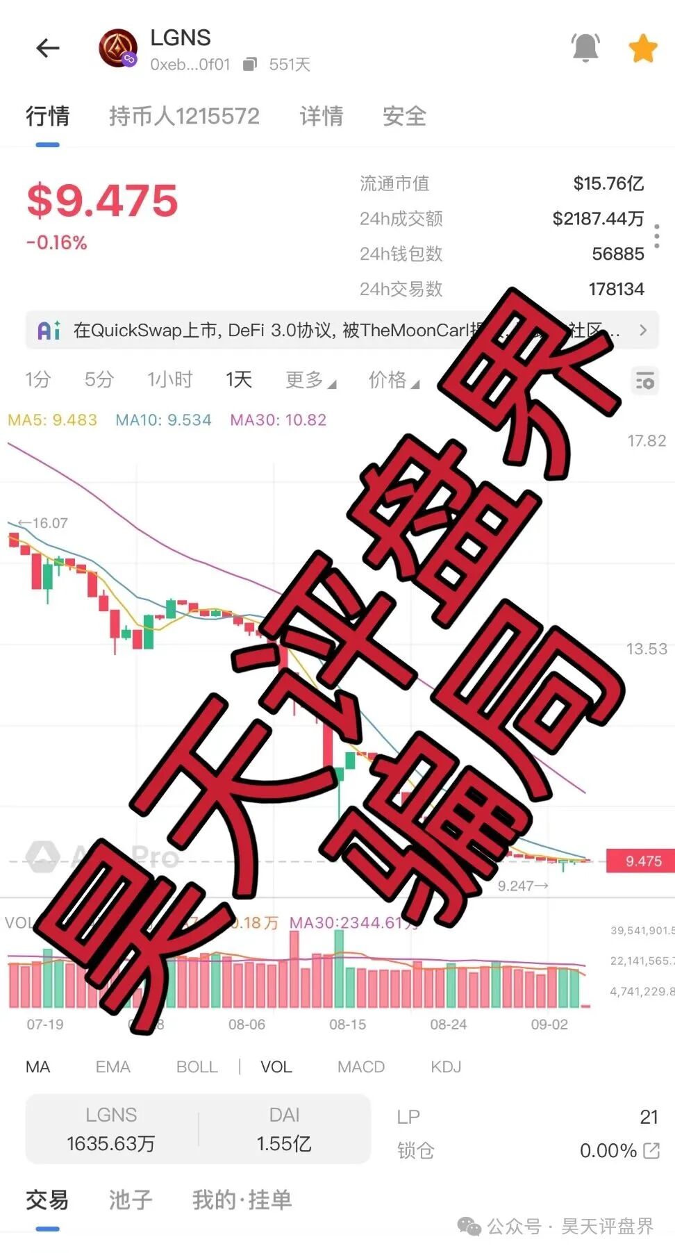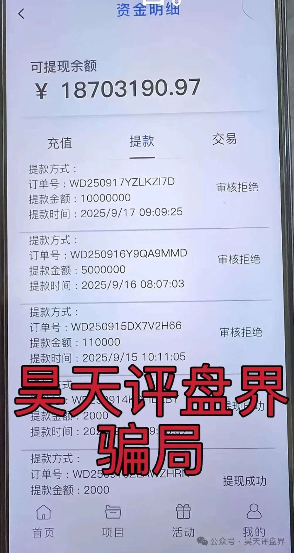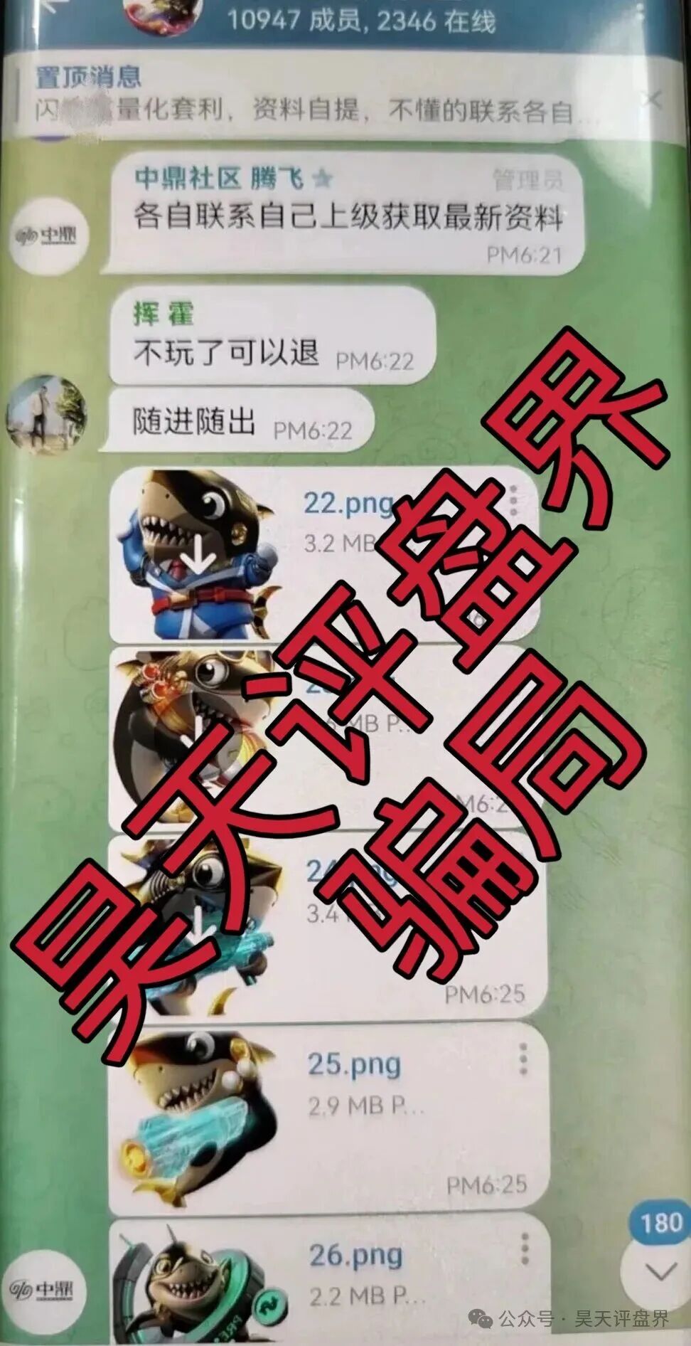 这个盘昊天也预警了2次,已经以“系统升级”为理由崩盘跑路了,3万多会员,诈骗团伙圈钱几千万,现在又开盘了一个叫“闪电sha AI高频量化”的骗局,也是绝对的一轮圈韭菜盘...