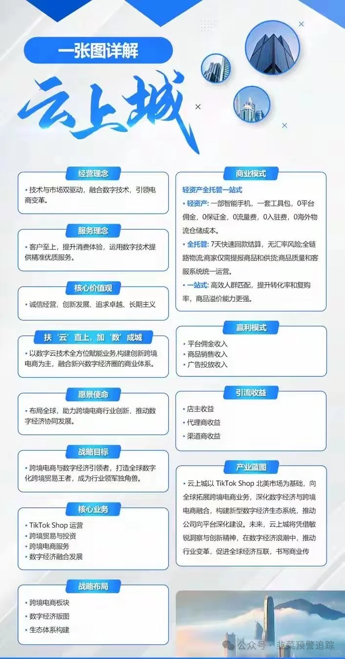 云上城TikTok骗局!它是打着跨境电商旗号的资金盘,运营公司为空壳,所谓授权是伪造。承诺超高回报,采用拉人头多级分销模式,符合传销定义。平台突然停止提现、关网,操盘手迅速转移资产跑路。已受害要保留证据尽快报案,转发文章让更多人看清骗局,守护血汗钱。