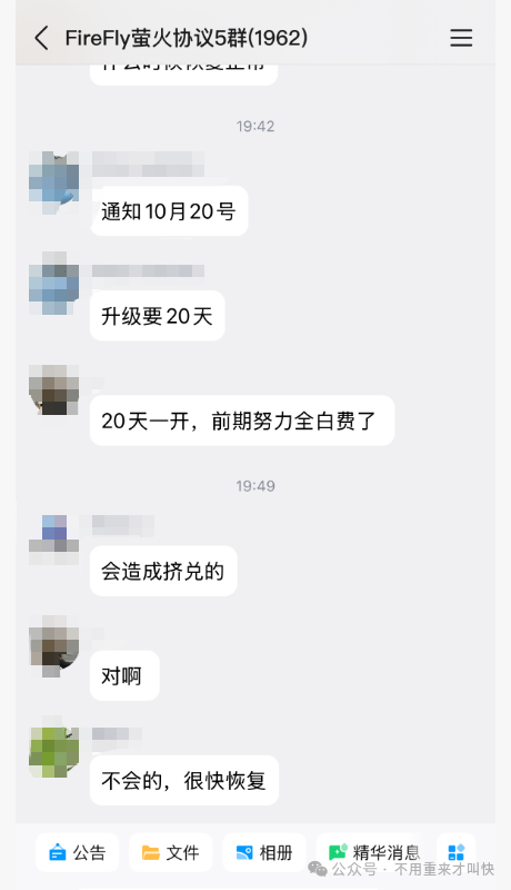 老玩家看到这种公告,都知道这是项目跑路了,操盘手预留时间转移资产,ff群里面直接炸开了锅: