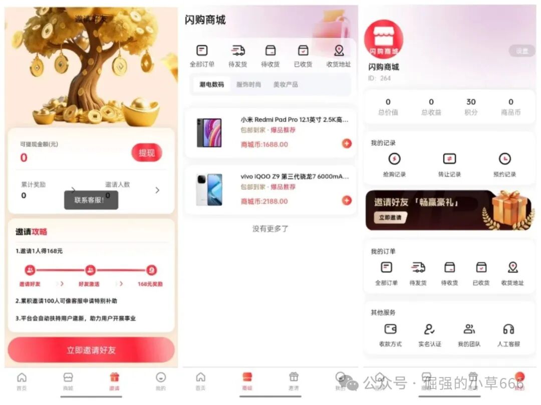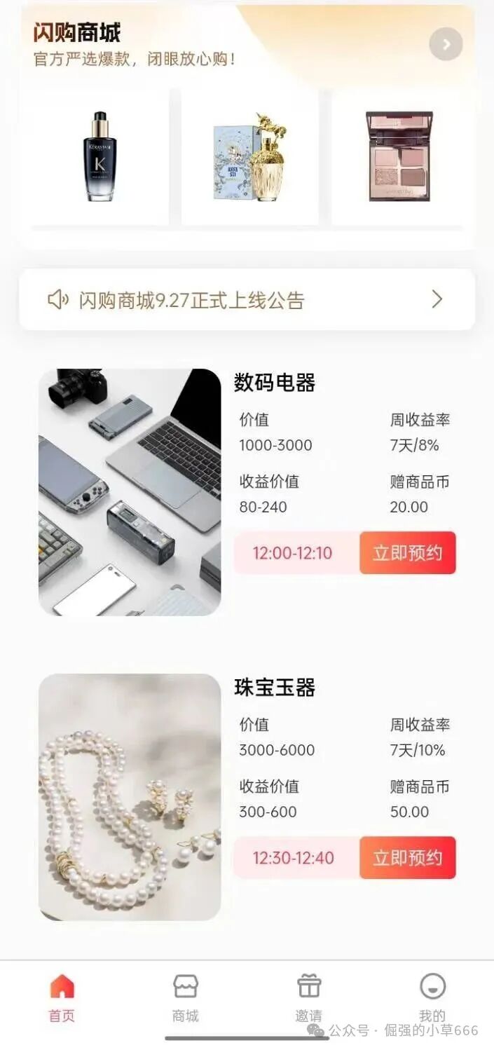 别被那些花里胡哨的名字骗了,“闪购商城”听着像淘宝拼多多,其实连个正经电商的边都没沾上。9月27日刚上线,安装包才2MB,你手机里随便一个游戏都几百MB起步,它凭什么做电商?界面粗糙得像十年前的网页,功能少得可怜,点两下就卡,用户体验差到离谱。可就这么个“玩具级”平台,居然敢承诺7天8%、7天10%的收益?算下来年化收益动辄四五百个点,银行理财一年才3%,它凭什么给你翻十倍?天上真会掉钱?