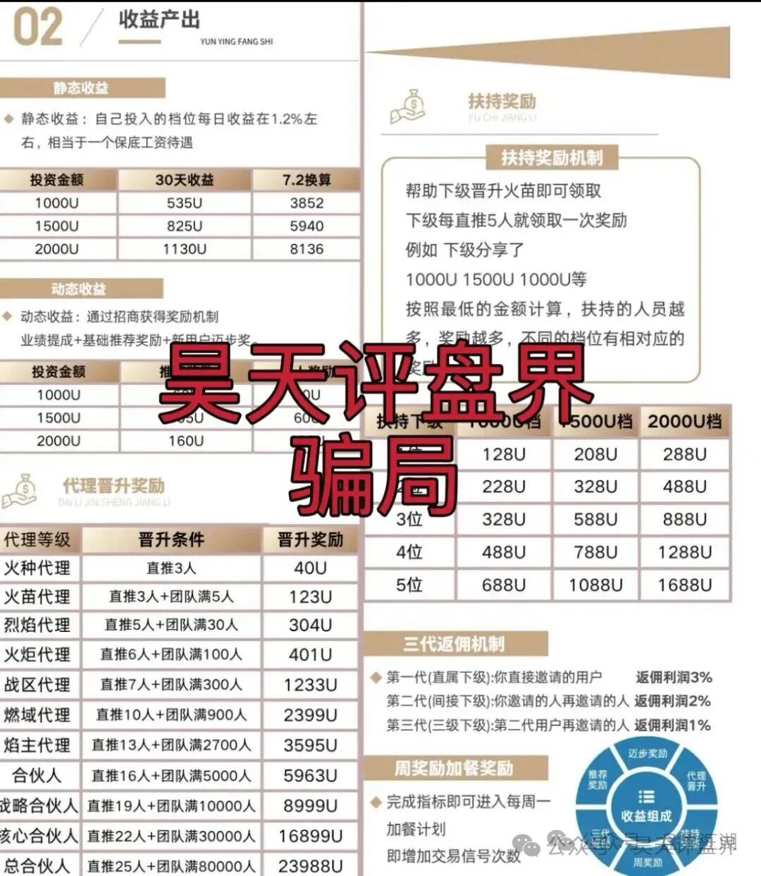 分红类资金盘骗局,之前昊天就预警了几次了,崩盘前也是大量投诉反诈文章来掩盖真相,目前已经彻底崩盘跑了!